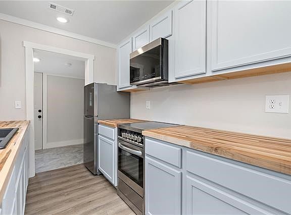 Back on market, no fault of seller! Completely Updated & Move In Ready! Quick commute up I-35 to Logistics Park KC or the metro area! New windows, doors, sheetrock, insulation, heating and cooling system, tankless hot water, lighting, flooring, carpet, tile bathroom floor, tile shower, vanity, Butcher Block counter tops in kitchen, painted cabinets, new electric range, microwave, garbage disposal, refrigerator, laundry hookups and barn doors to bedroom and bath. This lot is bigger than you think it actually runs across abandoned alley, seller removed old shed from SE corner of property. Ready for you to move in and make it your home. 2022-06-15