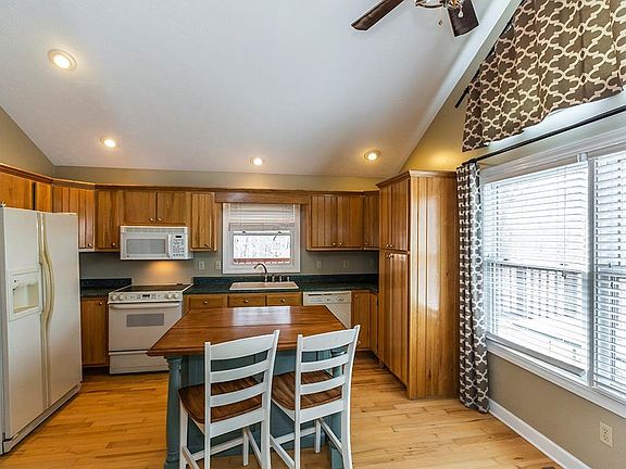 Custom built home 3BR 2.5BA on full finished basement w/breathtaking views of lake & hills from wraparound deck. Vaulted GR ceiling with recessed lighting. Kitchen with custom hickory cabinets, island, pantry & floors. Appliances stay in both kitchens. Oversized master ensuite with fireplace, separate stand up shower, claw tub and WIC. Could be 2 family home w/2 kitchens, 3 fireplaces, 2.5 baths, family rooms & bedrooms on each level plus, W/D hook ups. Oversized 2 car detached garage. Add't features include remodeled basement with ship lap ceiling, updated HVAC (3 years old) and Metal Roof (3 years old). Dual Fuel. Very neat & well cared for. Lots of windows to enjoy the rustic setting (so pretty with Spring, Summer, Fall foliage) with tons of privacy, yet only 12 mins from Berea. Lots of wildlife! Get it before it's gone!!!