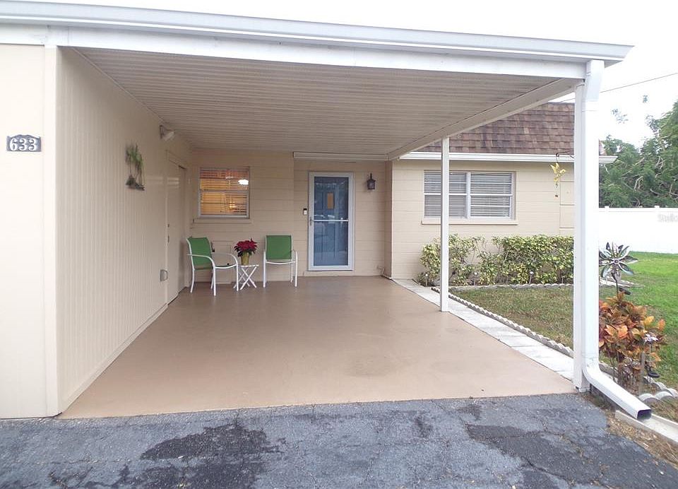 Are you ready to buy a Gorgeous 2 Bedroom 2 Bath End Unit Villa in Park Acres Estates that is Turn-Key Furnished & Sparkling Clean? This is "THE ONE". You will be instantly captivated when you enter this Beautiful Home. The proud owners of this unit have maintained it meticulously through the years. The Kitchen features Lovely Bright White Shaker Style Cabinets with Neutral Corian Counters along with Newer White Appliances and a Breakfast Bar. The Kitchen has been opened up to the Foyer and Living Room/Dining Room areas to create Open Concept Living. Luxury Vinyl Plank flooring has been installed throughout the entire unit with the exception of Tile in the Wet Areas. Soothing Neutral Colors coat the walls throughout the entire unit accented with Upgraded Baseboards. The Master Suite includes a Large Walk in Closet, Upgraded Ceiling fan with Remote & an Updated En-Suite Bathroom including a Newer Vanity w/Corian Counters, New Toilet & Upgraded Tiles in the Walk-In shower with Dual Shower Heads. The 2nd Bedroom is loaded with natural light and features a large closet with bi-fold doors and easy access to the Main Bathroom. The Living Room/Dining Room Combo features Luxury Vinyl Plank flooring & a Nice Ceiling Fan. There is a Gorgeous Enclosed Lanai across the entire back of the unit that is under A/C with Newer Windows and Luxury Vinyl Plank Flooring as well. The Rear of the unit features a Peaceful Park Like Setting with Mature trees and shrubs including a Large Jacaranda Tree and a Peek of the Water view to the left. A Cute Patio area has been created with Concrete Stones for the Family BBQ's or just enjoying the view. Motion Sensor Security Lighting & Gutters have been installed by the owner as well. Newer A/C installed March 2018, Newer Hot Water Heater, Newer Storm Door with Sliding Screen. The utility room is adjacent to the lanai and houses the hot water heater as well as a full-size washer & dryer too! This End Unit villa also offers a Carport to protect your car and a Storage Space for the extras. Park Acres is a Beautiful Community with Friendly Neighbors and a Nice Pool & Clubhouse for your enjoyment. What an Awesome place to retire or use as a Snowbird Nest! :) Need I Say More? Call NOW for your Private Showing!!! This Villa will be GOING>>>GOING>>>GONE...Before you know it.
