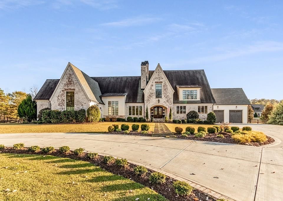 Breathtaking French Farmhouse! Nestled on over 15 picturesque acres, this one-of-a-kind retreat offers peaceful living just 25 Minutes outside of Atlanta. A Custom Arched Double Door welcomes you into this grand home. A Library turned Speakeasy showcases Floor-to-Ceiling Bookshelves, Bar Area, and Cast Stone Fireplace. Hardwood Floors flow from the Fireside Dining Room into a Large Chef's Kitchen with a La Cornue Dual Fuel Range, Built-In Refrigerator and Freezer, Dual Dishwashers, and Oversized Scullery offering ample storage and a Second Oven. Gather and entertain with ease in the Light-Filled Family Room with Custom Herringbone Tile Floors and Built-In Shelving. A stunning Walkway with Floor-to-Ceiling Windows leads into the Expansive Owner's Wing. Unwind in the oversized Owner's Suite with Vaulted, Wood Beam Ceilings, a Spa-Style Ensuite with Dual Marble Vanities, Soaking Tub, and Separate Shower featuring Dual Showerheads, Dual Oversized Walk-In Closets, Separate Laundry Room, and Kitchenette with Full-Sized Refrigerator and Dishwasher. A Full Bedroom with Private Ensuite, Mudroom, Bonus Room, and Half Bathroom round out the Main Level. Upstairs, a Secondary Owner's Suite offers Dual Walk-In Closets and a Private Ensuite with Dual Vanities, Soaking Tub, and Separate Shower. Four Additional Bedrooms each enjoy their own Private Ensuite Bathrooms along with an Upper Level Laundry Room. An additional Loft Space with a Bedroom, Full Bathroom, Kitchenette, and Large Bonus Room presents the perfect space for a Full Home Office or Guest Suite. Downstairs, a Fully Finished Basement delivers the Ultimate Flex Space with a Fitness Room, Recreation Room, and Full Bathroom. Outdoor living is easy with a Heated Pebbletec Pool, Cabana with Climatized Bathroom, Grilling Station, Outdoor Kitchen, and Outdoor Shower. Additional features include a Screened-In Porch with Outdoor Grilling Area, Pergola Covered Seating Area, Barn, Chicken Coop, Playground, Children's Tree House, Raised Garden Beds, Two 24 KW Generators that can power the entire home, and a Commercial Grade Water Purification System . Enjoy gorgeous grounds with over 15 Acres of Scenic Farmland running along Pumpkinvine Creek - the perfect spot for Fishing or Kayaking. A Two-Car Garage and Roundabout Driveway welcome you home. Located just minutes from a Private Airport, LakePoint Sports Complex, Lake Allatoona, Governor's Towne Club, and more with easy Highway Access!