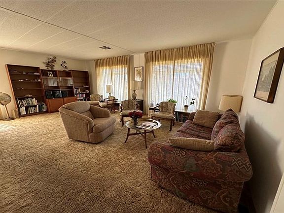 Enjoy comfort and community in this 2-bedroom, 2-bath home with 1,440 sq ft of living space. Built in 1972, it blends vintage charm with modern upgrades. Relax on the cozy covered porch or in the light-filled living room. The separate dining area with built-in buffet flows into the living space, ideal for gatherings. The kitchen features nostalgic pistachio green cabinets, Formica counters, a new built-in gas range, and newer electric oven. A spacious family room with laminate flooring offers a casual retreat. The primary bedroom includes two closets and an en-suite bath with a vintage green tub and floral wallpaper. The second bedroom is generously sized and near a full guest bath. Plush carpet adds warmth to the main rooms, with laminate and vinyl in high-traffic areas for easy upkeep. Outside, unwind on the large back deck overlooking nature and the dog park. Fruit trees and a 7’x14’ shed add value. Community amenities include a clubhouse, fitness room, jacuzzi spa, and a dog park. This home offers peaceful living in a friendly 55+ community. Schedule your tour today!