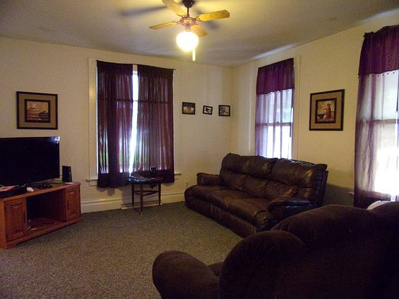 This property is located on route 67 on a corner lot with alley behind. It is improved with 1 and a half story home. The downstairs consists of kitchen with no appliances to stay, dining room, living room, entry with stairs, master bedroom, full bath, and large utility room with lots of cabinets and washer/dryer hookups. The upstairs has 2 nice sized bedrooms and a small hallway. There is a cute wrap around porch and an attached 3 car garage with last stall being separate and finished. There have been several updates such as Central ac last year, roof on garage 7 or 8 years ago, and some electrical service has been upgraded to 200 amp.