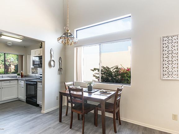 Come see this spacious and bright 3 bedroom/2 bath town home! Walk in and be pleasantly surprised with the soaring ceilings, cozy fireplace, and new kitchen! New vinyl floors throughout main living areas. 2 full baths with skylights. Lots of storage in this house! Bonus room could be Den or office. All appliances are included, even the washer and dryer! Lovely community with mature trees, nicely paved roads for walking and a lovely community pool!