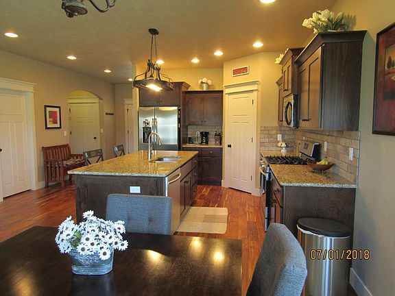 Beautiful Newer home in Syringa Springs Subdivision. Nice open floor plan with engineered hardwood flooring throughout the entry, dining, kitchen and living areas. Great kitchen with Granite counter tops, large 7'8" island, great corner pantry and stainless steel appliances, including a gas stove. The Master suite is on the main level with a jetted tub, walk-in tiled shower, double vanities and large walk-in closet. This home also features an upstairs bonus room and a good sized laundry room on the main floor. The home is immaculate and clean. New landscaping, RV parking and plenty of room in the three car garage. 10X20 cement pad already poured for your garden shed. The home sits only one block from the subdivision swimming pool and the backyard opens up to the large grass commons area which is a great bonus.