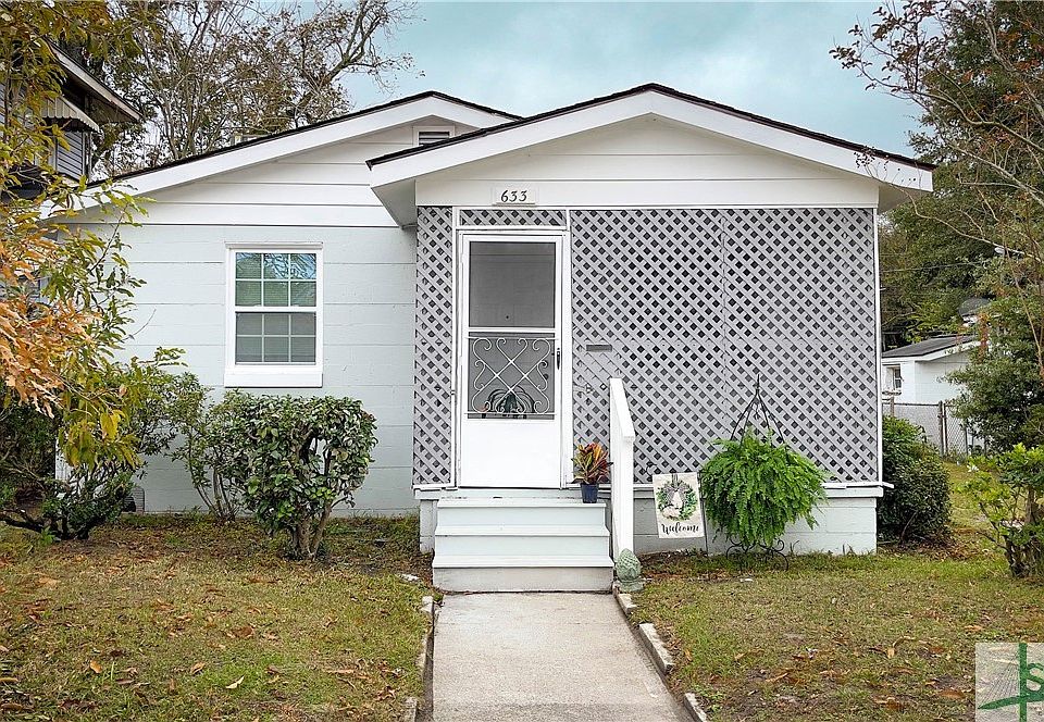 Come see this charming 2-bedroom, 2-full bath home boasting beautifully refinished hardwood floors. This home features an updated kitchen with tile backsplash and stainless steel appliances. Situated on a generously sized city lot, enjoy having your own off street parking and fenced yard. The home has been updated throughout and has a newer roof. Enjoy relaxing with a tea and a book on the private screened front porch. This gem is ideally located near downtown Savannah and all the conveniences of the city.