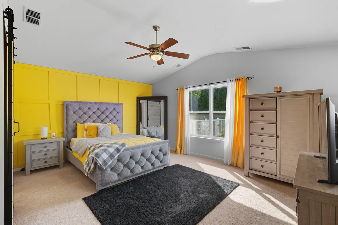 Fenced in yardTwo-car attached garagePrimary suiteOpen-concept livingSoaring vaulted ceilingsAbundant natural lightPrivate en suite bathroom