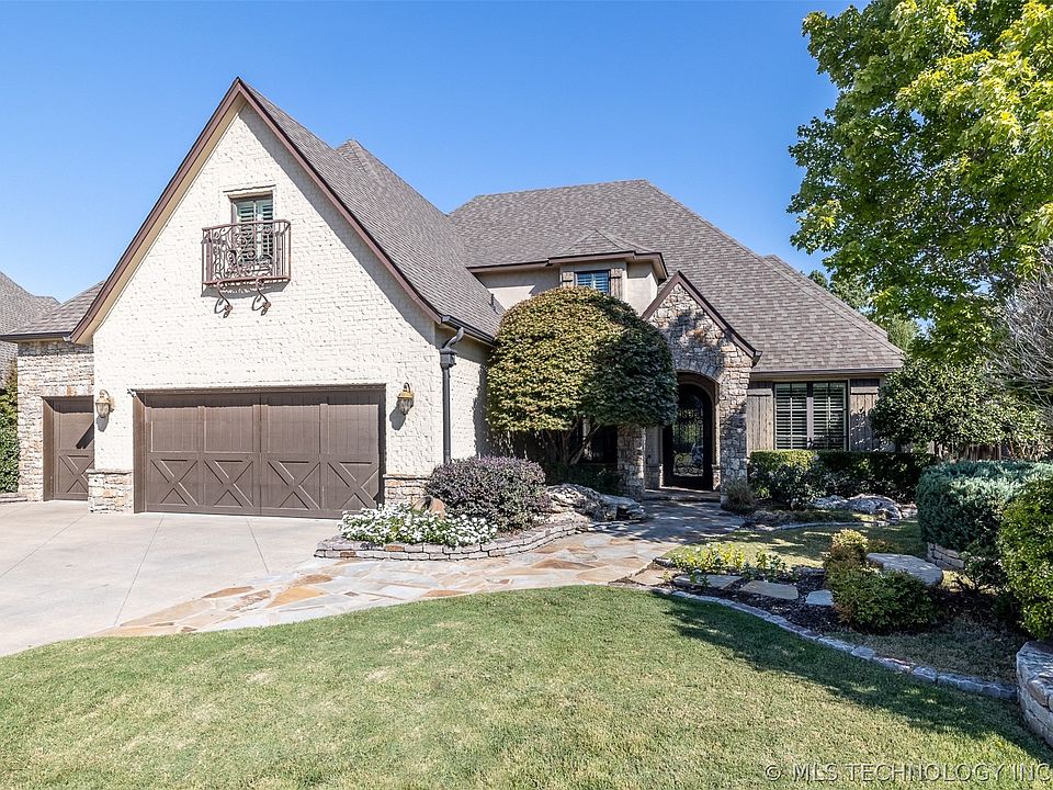 *Stunning Custom by Cobblestone Homes loaded with Luxury Features and fabulous Outdoor Living on coveted Stonebrooke’s lush wooded Greenbelt, Jenks NW! Enjoy breath-taking views from the Covered Outdoor Living with Fireplace and Kitchen or from the inviting Covered Balcony off the awesome second-floor Game Room with Wet Bar! The interior showcases beautiful updates throughout including a spa-style Bath addition upstairs to create the perfect second Master Suite! First floor Master Suite boasts Sitting Room with Fireplace plus Luxe Bath. Other features throughout include hand-scraped hardwoods, stone accents, gorgeous millwork and granite counters plus all Bedrooms have private Baths! Desirable first floor features handsome Study with built-ins and closet, gracious Powder Bath, spacious Formal Dining w hallway to Butler’s Pantry and Chef’s Kitchen with stainless appliances and full freezer and fridge open to lovely Great Room with stone fireplace and built-in cabinets. First floor is rounded out by the large Utility Room with sink and tons of Storage plus convenient Drop Zone. Upstairs is super livable with 3 large Bedrooms each with ensuite Baths plus the Game Room. The stunning Backyard is the perfect retreat with peaceful views and gated access to the greenbelt area. Also included is a dog run with pet door to a gated area in the spacious 3-Car Garage! All this nestled in desirable StoneBrooke Estates which offers a neighborhood pool, ponds, walking trails, basketball court and sports area! SB
