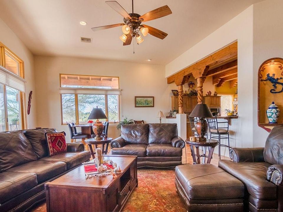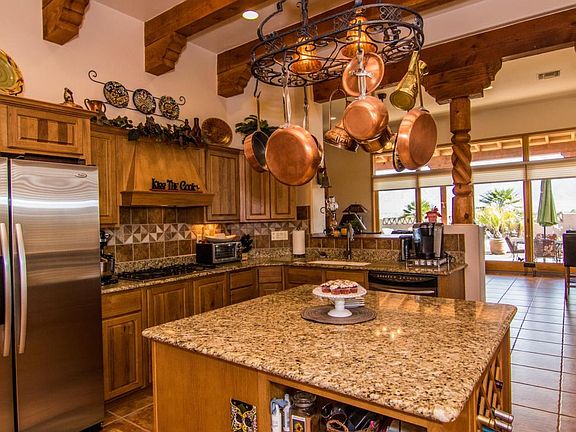 Fabulous views of the Santa Rita mountains and all their ever-changing colors. This meticulously maintained home offers prestigious living in the gated community of The Alamos. You'll enjoy the private courtyard and be amazed as you enter the home. The high ceilings and custom ceiling fans draw your eyes up, while the turned wood posts will catch your attention in the formal dining area. The professional 'faux' paintings enhance the arches and niches, and beamed ceilings bring a European flair. The island kitchen is a chef's delight with granite, stainless appliances, hickory cabinets, and is open to the great room for engagement with your guests. Two master suites offer you and your guests the best of the best in luxury. Outside, enjoy the fire pit, BBQ, waterfall and those VIEWS!