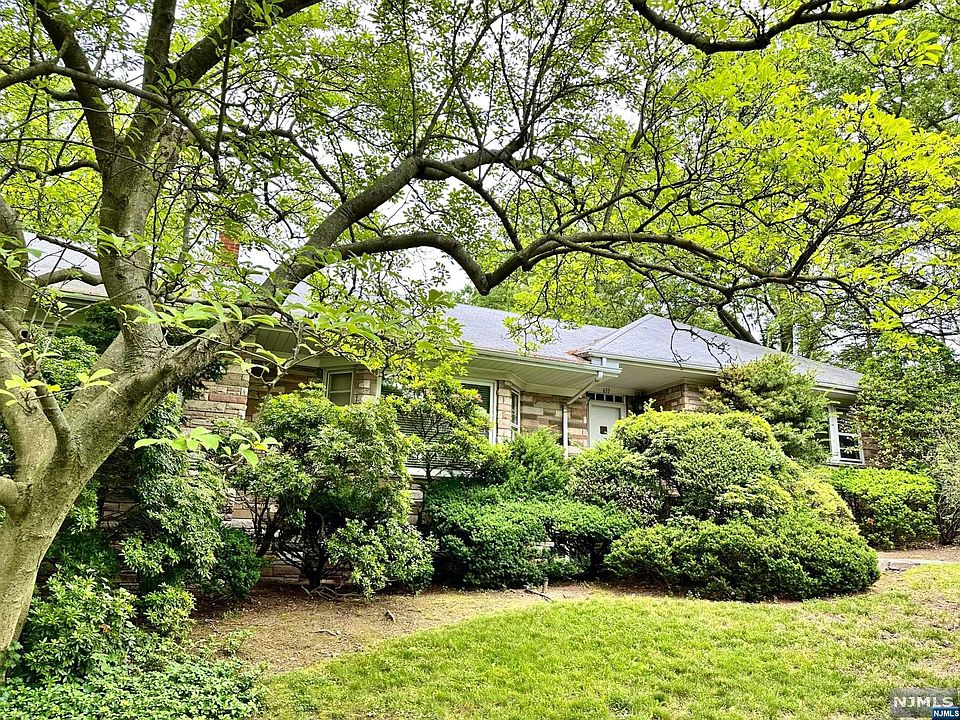 Expansive ranch set on 75 ft x 120 ft property in west englewood section of Teaneck. Gracious Living Room with fireplace, Formal Dining Room, Den, generous sized eat in kitchen, powder room. The primary suite includes full bathroom, continue to 2 additional well sized bedrooms and hall bath. Glass doors from the kitchen lead to an expansive deck. Full, nice height basement with an oversized two car garage, rec area and laundry. The steel beam construction is visible in the garage ceiling. Beautifully surrounded by trees and adjacent to "The Strand." House needs some TLC. Close to houses of worship and transportation. Ideal for one floor living or take it up a level to build your oversized dream!