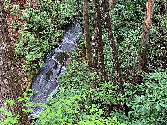 Cash Buyer Alert! New Construction on 4 acres with mountain views and your own private waterfall! Cabin is unfinished on the inside but electrical panel is in and some plumbing done. Finish the interior to your own design. All infrastructure is in place, power, well and septic. Full size stairs lead to open upper level which could become two bedrooms. Garden space or private entertaining on two lower levels out back of cabin. Located in an established community of nice homes, all on large tracts. Waterfall can be seen from a private platform that is easily accessible. Most of the acreage is steep with a terraced slope out behind the cabin. Owner requested that no address be listed. Owner currently has satellite internet and phone through Hughes Net. Owner is being transferred out of state.