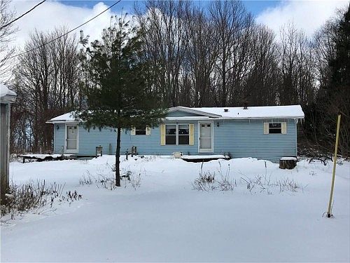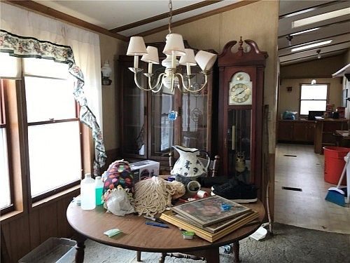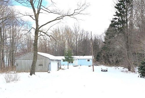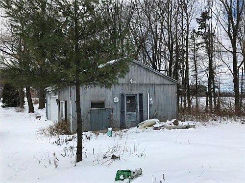 Value is in the 6.1 acres. Working well & septic on property. 1988 double wide mobile home has a roof that is 5-6 years old. Detached 2.5 car garage w/ stone floor & opener. Water well pump replaced 2016.
