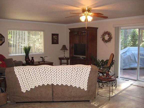 Beautiful corner lot, cozy, well maintained home features central heat & air, energry efficient gas stove, remodeled kitchen with oak cabinets, crown molding throughout, mirrored closet doors & ceiling fans. Low maintenance landscaping front and back with auto sprinklers and drip system. Front and back deck, mature shade trees, nice garden area, 10X12 storage shed, 2 driveways and RV parking. Relax under the pines on your on .36 of an acre. Call Melissa Finley, New Age Realty for a tour. (530)990-1563