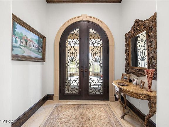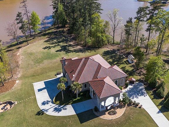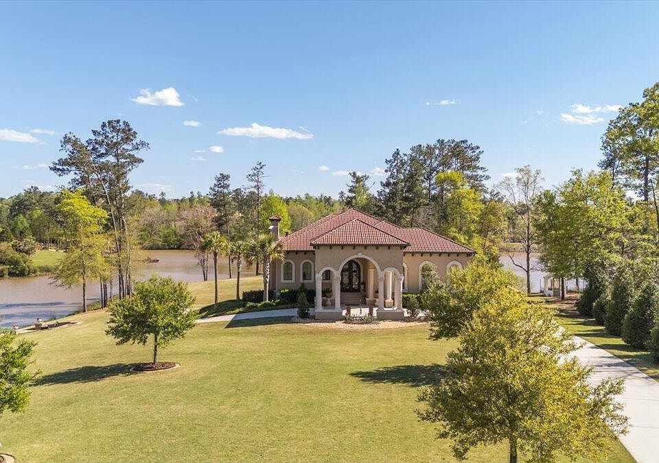 True trophy property! Immaculate Mediterranean home with breathtaking views on Lake Tobesofkee. This 3 bedroom 2.5 bath home features a gorgeous Porte Cochere entrance, 100% stone travertine floors throughout entire house, gourmet kitchen with high-end appliances including Wolf gas range and Subzero refrigerator/freezer, oversized granite kitchen island and travertine farm sink. Open floor plan with fireplace and french doors that open to wonderful Loggia with outdoor kitchen. Master bedroom suite with large bathroom, HUGE Master closet, coffee closet with refrigerator & sink/faucet and french doors to Loggia. An elevator delivers you to a wonderful basement with 2 bedrooms, full bath, storage galore and patio overlooking lake. Property includes unique peninsula lot, firepit area, dock and too many amenities to name. Please ask your realtor for complete list of unique features.