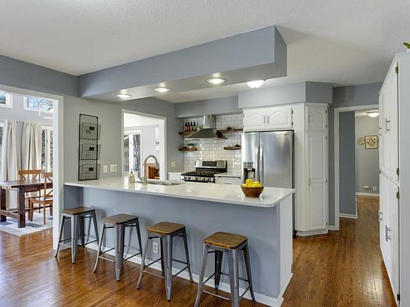Gorgeously updated rambler in PRIME Golden Valley Location! Natural light, gleaming hardwood floors and a beautiful open layout make this one hard to beat. Kitchen and dining room are beautifully updated. Quartz countertops, professional hood vent, gas range and stainless steel appliances in the kitchen paired with stunning natural light and vaulted ceilings in your dining room make this home perfect for entertaining! The outstanding master bedroom has a large walk in closet and the master bath is beautifully updated with gorgeous tile work. Home sits on a large, peaceful corner lot, just 1 mile from Theodore Wirth Park!