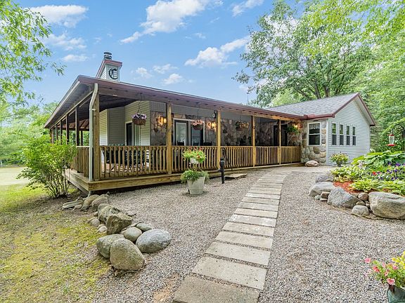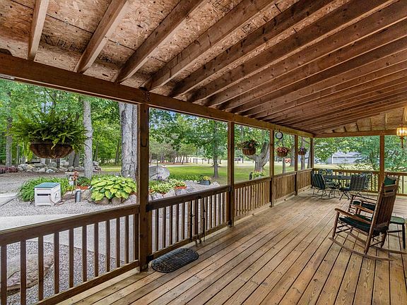 Peace in the country is what this 20-acre ranch offers! Move in ready 4 bedroom, 2 full bath home that is centrally located between Gladwin, West Branch, & Houghton Lake. Large entry welcomes you in and the sun porch off the kitchen provides year-round views of the wild life in all seasons. Cuddle up with a good book & enjoy the summer breezes on the wrap around deck. Kitchen has solid oak cabinets with soft glide drawers, appliance cubby, & snack bar. The dining area is large enough for all those large family gatherings. There is a large fenced yard for the kiddo's or for the family pet to romp in. This home offers a first-floor laundry but there are hook ups in the basement for another laundry & already plumbed for another bathroom & for an indoor hot tub, 3 slider doors out to the fenced yard, large mechanical & storage room. The master bath just underwent a complete remodel. Into horses or other farm animals? Amazing 40 x 40 horse barn with electric and water supply, a 12 x 32 tack area, & groomed pasture with a run in. The 40 x 72 pole barn is any man's dream with 220 power, concrete floor & water supply. The 26.5 x 40.5 garage has two doors for parking and plenty of extra space, off the back is the 10 x 32 boiler & wood storage room that heats the garage, house, & water. Home comes equipped with a whole house automatic generator. Current internet is satellite but cable is scheduled for spring of 2023. Children can attend Houghton Lake, Gladwin, or West Branch schools. This home & property will leave you in awe.