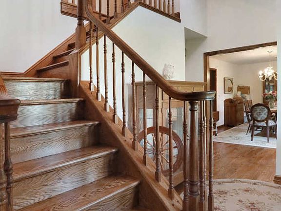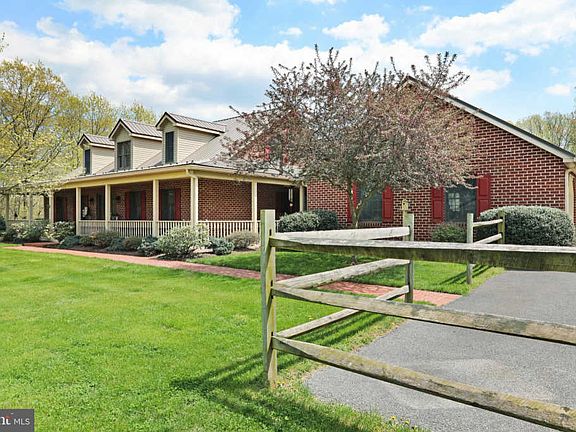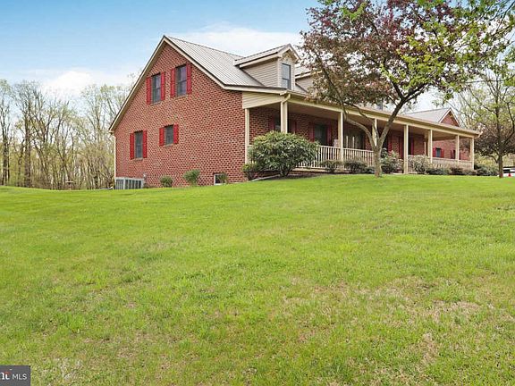 Private country estate offers 6+ acres of peaceful living! Custom built brick cape cod features a wraparound porch; NEW lifetime warranty metal roof (2017); Oak hardwood floors; Custom raised panel oak cabinets, breakfast bar/island in kitchen; 3 sided propane fireplace in family room; Main level master suite and bath; ~Log cabin~ rec room on lower level; Wooded views and stream at edge of property. Listed below appraised value!