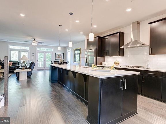One of the largest end of group executive townhomes built by NV in this Sold-out, Resort-inspired community featuring pool, fitness center, walking/jogging paths, shopping and more. Andrew Carnegie model with 3-level 10-foot extensions. As the evening sky casts begins to cast long shadows, you'll enjoy the sunset views and a deck overlooking farmland vistas of fields and a picturesque So many upgrades to make your life easier: hardwoods, Quartz counters, ss appliances, huge breakfast bar/island which seats 5 and will be perfect now that you feel comfortable inviting friends and loved ones into your home. And there are so many spacious areas for gathering. Open feel main level with kitchen flowing to living room creates all the right atmosphere for daily interactions. Three large bedrooms perfect for anyone to feel comfortable. Fully finished lower level with walk out to rear grassy area. 2-car garage provides a haven for your vehicle of any size as well as storage options. Welcome home to convenience, simplicity, and luxury.
