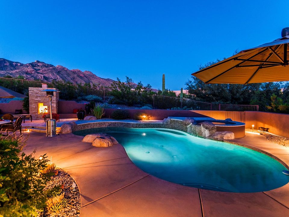 For more information on this property, contact the Listing Agent, Cynthia L. Hedlund at (520) 591-6968 or CynthiaH@LongRealty.com. Located in prestigious gated La Paloma, this stunning contemporary masterpiece captures the heart of the Catalina Mountains and the beauty of the desert. This home has been pictured in Tucson Home and Garden featuring ASID Terri Taylor and Landscape Designer Sven Gunn. The overwhelmingly beautiful new patio w pool and spa, fireplace, and outdoor kitchen and the contemporary interior totally redone with new walls, new flooring, custom fireplaces and built-ins, new baths and new Chef's kitchen make living and entertaining in this home a dream. Chef's kitchen is equipped with all new Electrolux stainless appliances, etc. This is the best of the best in homes as well as school districts and location! EXTRA LARGE ''2.5 CAR GARAGE'' WITH TONS OF STORAGE. Totally pristine!
