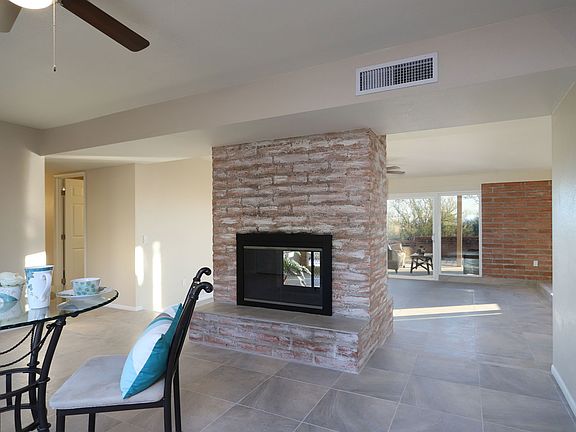 In a natural setting, perched on a hill with AMAZING VIEWS all around - Finger Rock/Catalinas to City Night Lights & glorious Sunsets--this NEWLY RENOVATED home gives you adobe brick CHARACTER THAT'S FULLY UPDATED: new tile flooring throughout, LED lighting, neutral colors to fit your decor. Functional OPEN KITCHEN includes walk-in pantry with custom glass door, SS appliances & granite countertops. New HVAC with 10-year warranty. Huge walk-in shower in Master with private enclosed patio, too. Fully updated 2nd bath. New Jeld-Wen windows, doors to let in lots of light. White-washed dual fireplace for cozy evenings. Enjoy the outdoor spaces, front and back-perfect for moments of solitude or friends & family gatherings. Bonus storage are for any extras or even a mancave (comes with