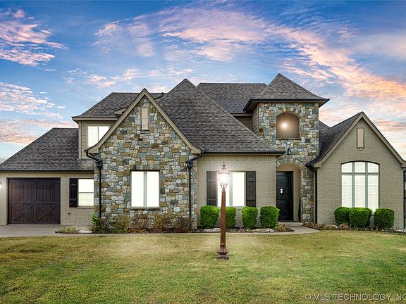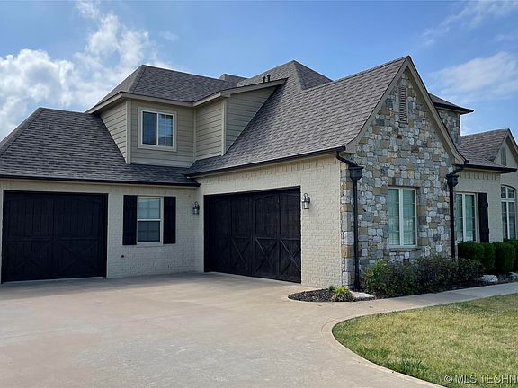 SELLERS INCENTIVE TO BUYERS: Sellers will pay up to $25k towards closing costs and/or home improvements like paint and carpet, and/or interest rate buy down. Beautiful 2-story home in Twin Creeks at Stone Canyon with plenty of space for a pool and/or custom shop! Home has 4 bedrooms, 3.5 baths, dream kitchen with stainless steel appliances, large center island w/6cm chiseled granite, butler's pantry, formal dining, dedicated home office, spa-like master suite with double shower, spacious closet that connects to the utility room, game room/hobby room with theatre connections. Downstairs has beautiful hardwood floors throughout. 2nd bedroom downstairs with private bath. The 2-story entry greets visitors with the Juliette balcony. 2 more bedrooms upstairs situated around a pullman bathroom. A great covered back patio with gas line ready for your outdoor kitchen. Convenient built-in storage space in the back of the home, great for storing lawn equipment or future pool equipment. Short distance to the fantastic neighborhood pool. Access to a scenic walking trail that will take you to the beautiful Stone Canyon Lake with access to a small beach, fishing dock, and plenty of space around the lake to fish and kayak. Transfer into Owasso Schools upon availability. PRICED BELOW APPRAISED VALUE! MOTIVATED SELLERS, BRING AN OFFER!