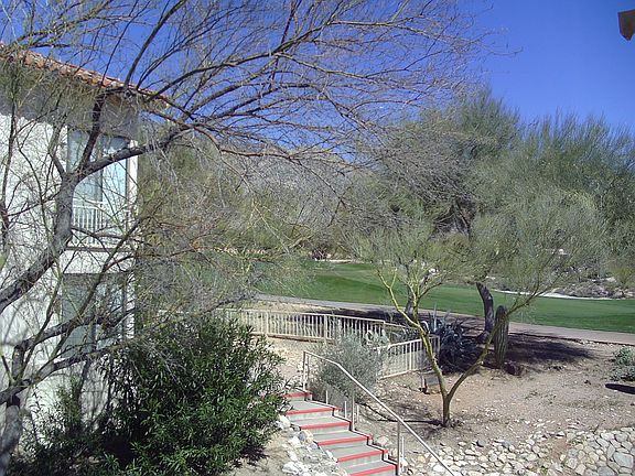 Upstairs - La Paloma Condominium (built in 1996 as condo) 2 bedroom/2 bath; carpet, tile; walk-in closet in master bedroom; gas/electric/attached garage with enclosed/direct access to unit; UPSTAIRS CONDO WITH VIEWS OF La Paloma Country Club Hill Course AND Mountains; all appliances including washer/dryer in laundry closet; Porch with room for grill, seating and eating area; community pool (heated) and spa; Walking path throughout La Paloma Gated Community; Best Community in Foothills; Georgeously landscaped with large Trees, desert fauna; 2 separate Man-Gated entrances to community Owner pays for trash and water, Tenant responsible for gas and electric