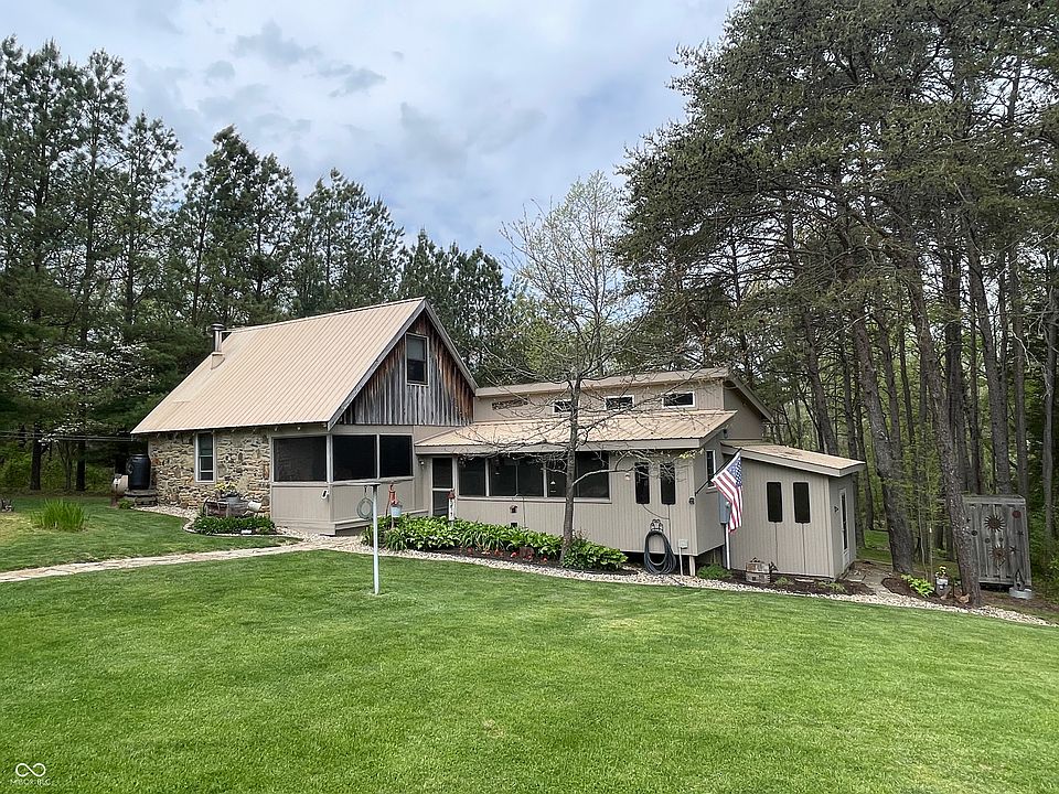 Once in a Lifetime Opportunity!! Rustic Cabin on 2.78 Wooded Acres w/Private Pond! Close to Brown County! Gorgeous Landscaping w/Lots of Perennials! Enjoy the Tranquility of this Serene Setting & Be One w/Nature! Sit & Relax in the Enclosed Porch (Approx. 540 Sq Ft) which Connects the 2 "Wings" of the Cabin! The Main Cabin offers Kitchen w/All Appliances, Full Bath w/Laundry in Closet & Great Rm w/Murphy Bed and Beamed Cathedral Ceiling w/Loft (Sellers use this as a 2nd Bedrm w/Closets Lining each Side). 3 Refrigerators will Remain! Propane Lights are Located in the Main Cabin Bath (2 Lights), One in Kitchen & Porch & EW Bath! The "East Wing" has a 19'x12' Area which can be Used as a Bedrm or Family Rm w/Bookshelves & Bamboo Flooring! Beautiful Beveled Glass Pocket Door into the Full Bath w/Shower! Plus there are Solar Lights in the East Wing, EW Bath & Runs the Radio Located on Bookshelf in EW! Sellers Had Electricity ran to the Cabin in 2011 when They Purchased the Property! Crawl Space was Encapsulated in 2019! Utility Rm/Bsmt for Workshop or Storage! Outside Shower! Propane Water Heater - 2020! Woodburning Stove (w/Bird Cap on Flue) was new in 2012 & Has Been Cleaned Every 2 Yrs & will be Cleaned on 7/8/2024! Brown County Public Water! Septic was Pumped Approx. 3 Yrs ago! Invisible Fence Surrounds Cleared Area including Pond! Pond has it's own Small Beach for Launching Paddleboat/Canoe & Has a Small Fishing/Boat House & Sauna House (Sellers have Never Used). Gorgeous Water Lilies Bloom in the Pond Plus Sellers have It Treated 6 times a year by Seymour Aquatic Control! There is Also Another 16' x 12' Shed w/Loft for Additional Storage! Raised Bed Garden Area Surrounded by Tall Fencing to keep out the Deer! Stone Walls 1 1/2 Ft Thick w/Insulation! Many Personal Items will Remain & Please see List in Documents!