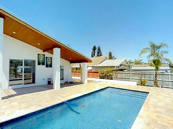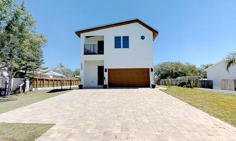 This house is high and dry. Wide wheel chair accessible doorways and shower. Neighborhood has deeded access to beach. Garage door WiFi capable. Marble flooring lower level. Canal front modern design home. 2 Master bedrooms, one lower and upper floors. Downstairs Master bath has roll in shower, separate 6' whirlpool tub and w/double sinks. Upstairs master w/ beautiful views of Intracoastal. All rooms have high vaulted ceilings. Sea turtles feed at dock. The entry is full of light and open to above for a spacious feeling (buyer could close in for a 4th bedroom). Driveway, walks, patio and pool deck to be brick pavers. Room for additional dining area between living room and pool. Upscale windows and exterior doors are Hurricane impact compliant. Concrete block house built to last for many years to come. Floating dock & stainless steel boat ramp not included. Bamboo floors upstairs. Plenty of room in entry to add wheel chair lift. If buyers have home on East side of A1A or direct Intracoastal home or lot, sellers will consider a trade. Note: Owner is a Lic. Realtor.