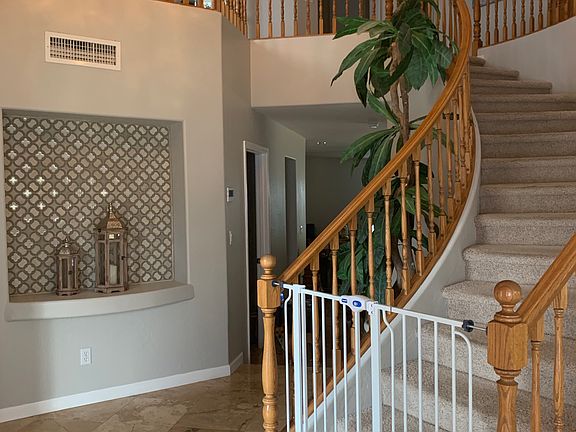 Welcome to this amazing 4 bedroom, 3.5 bathroom home with 3000 square feet with upgrades galore. The dramatic entry with spiral staircase makes grand statement upon entry. The gourmet kitchen features all white cabinets. cabinetry, granite counters, stainless appliances, gas cooktop, island & pantry. This home also features; two tone paint throughout, tile floors, new plush carpet and tons of windows throughout. Large grassy backyard professionally landscaped is an entertainers dream featuring gorgeous pool, BBQ grill, firepit, & huge covered patio for shade all summer long. Huge Master retreat with double door entry, large master bath w/dual vanities, soaking tub, large shower & large walk-in closet. This home will not last long