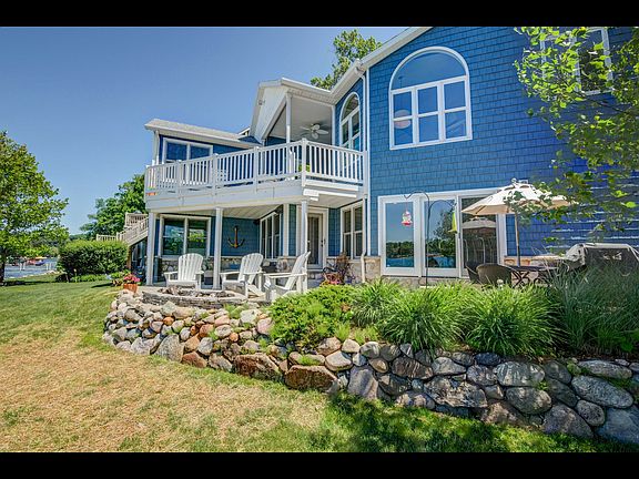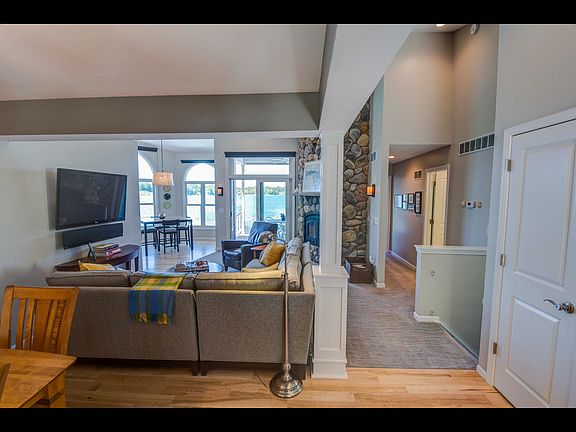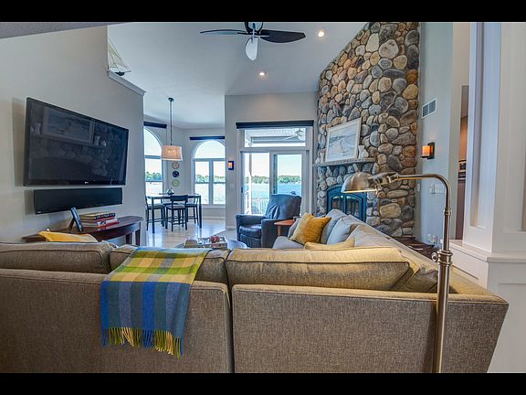 94 PRIME BIRCH LAKEFRONT! Amazing lakefront sunsets reflect on this stunning custom home located on a picturesque beachfront lot. Detailed landscaping welcomes you to the main entrance. Custom interior design focuses on the panoramic lake views that are captured throughout the home! Quality interior finishes include chefs kitchen, stainless appliances, beautiful wood flooring & granite counters. Floor to ceiling lake rock fireplace highlights the family room. Master suite with full en suite & separate entrance to composite decking that wraps the lakeside. New boulder parking area opens back lot for desired extra space! Stylish designed patio with paver fire pit will provide many memories of Birch Lake Life! Custom quality defines this lovely home. Welcome to Birch Lake!
