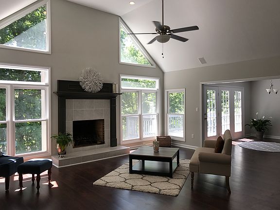 Stunning custom nestled on 1+ ac wooded lot. Enjoy the extensive updates to this open home. Dramatic vaulted 2 story great room with windows galore & dramatic fireplace. Chef's kitchen w/ designer granite, backsplash, GE Profile dble ovens, new SS dishwasher, micro & cooktop. New carpet, paint, lights. Luxurious Master on main. 3rd garage bay w/ work area off ENORMOUS partially finished walk out basement w 1200 sqft new carpet . New high-end energy efficient dual fuel HVAC. Newer roof.
