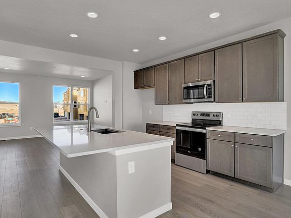 Brand New Classic Home in the desirable Wolf Ranch neighborhood. Maintenance free living with no yard maintenance. Clubhouse with fitness center, pool, hiking trails & parks. This 2 story home has 3 Beds and 4 Baths. There are 2 Bedrooms on the upper level each with their own en suite Bathroom. The main level has easy to maintain Luxury Vinyl flooring, a huge Living room, a Dining room, a Study area, a half bath, and the Kitchen has Quartz countertops with a huge island and Stainless Appliances. This unit also has Air Conditioning. The home has a bright and open feel with a walkout to a deck off the kitchen and dining area with tremendous views of Pikes Peak and Mountain range. The garden level basement has a Bed and Bath as well. Washer and Dryer included. Come see this beautiful home today! Tenant pays all utilities, No Pets