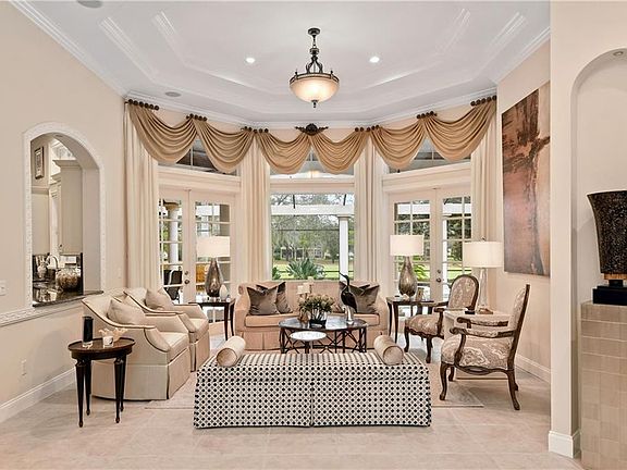 Discover Perfection on the Golf Course! This remarkable 4BR/4Bath one story residence by Stonebridge Homes is built on a very grand lot with panoramic golf course views! The open floor plan welcomes you to an impeccably maintained, well appointed, move-in ready opportunity rarely available. Bright and airy & professionally decorated, this home is a "Jewel Box" that contains so many nice things all in one place! Interior finishes include Brazilian cherry wood engineered floors in all bedrooms & the dining room; crown molding, custom woodworking, ceiling details throughout and an impressive "Wine Wall" with accent lighting is definitely a conversation piece! Customized closets have maximized the numerous storage spaces; Gourmet Kitchen is well designed with pot filler, granite back splash so easy to clean, lighted cabinets and built in desk. Whole house water softener, whole house sound system, 14 HD-cameras with wireless alarm system and Lutron lighting in main living areas, are also a plus! Outdoor living area is spectacular with deluxe summer kitchen, sit up bar, lighted step down paver terrace, Pebble Tec finished pool, heated spa, landscape lighting and architectural screen enclosure. Master suite has two double sliding doors with lovely views out to pool and golf course. Two of the three Secondary bedrooms are ensuite for complete privacy. The 4th BR is currently used as an office and has a full bath right outside the door to service its use as a 4th bedroom. All TVs to remain.