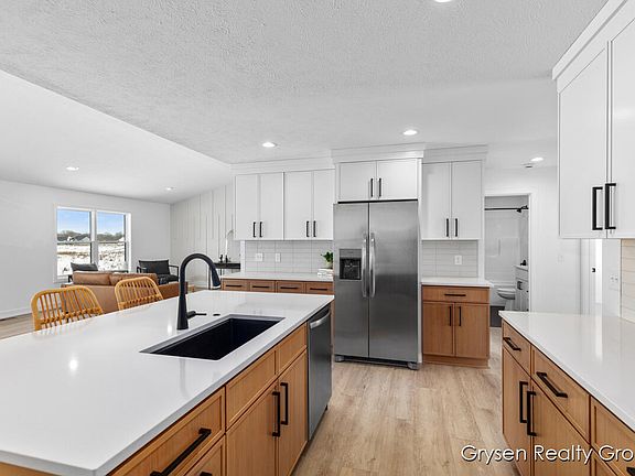 Welcome to this beautiful new construction home in the Dew Pointe neighborhood! The main level features a spacious kitchen with a large island, abundant cabinetry, and a bright, open layout. The primary suite offers a walk-in closet and private bath. Two additional bedrooms and a full bath complete the main floor. The finished basement includes a large living area, 2 bedrooms, full bath, laundry room, and ample storage. Step outside through the slider to the deck, or walk out to the backyard from the basement. Enjoy access to neighborhood parks and multiple community ponds!