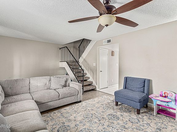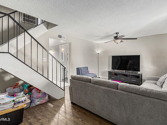 This MOVE IN READY townhouse has updated paint colors and a kitchen is outfitted with tile countertops and a mix of stainless steel/black appliances. Look over the breakfast bar into the dining area with sliding glass doors leading to the patio and backyard. All bedrooms are on the upper level. An ensuite bath with dual vanities and a tub/shower combo, a walk-in closet, and a private balcony complete the Master suite. Community perks include a pool and clubhouse! It's just a few minutes walk to Rose Lane Park and Aquatics Center, and a mile to the dining/shopping options at Bethany Square Shopping Center. Also near Walmart Supercenter, bus stops, and US-60 access.