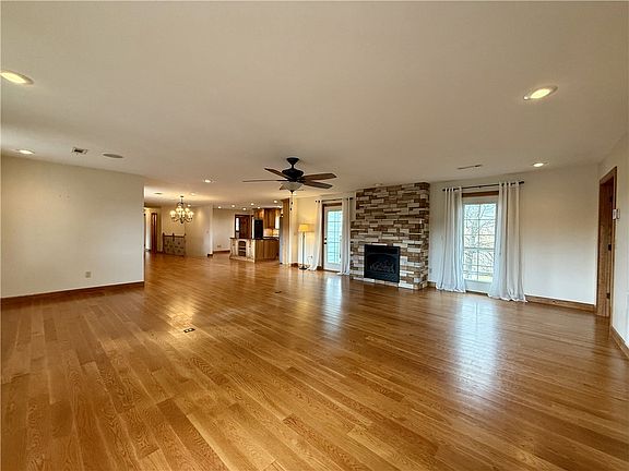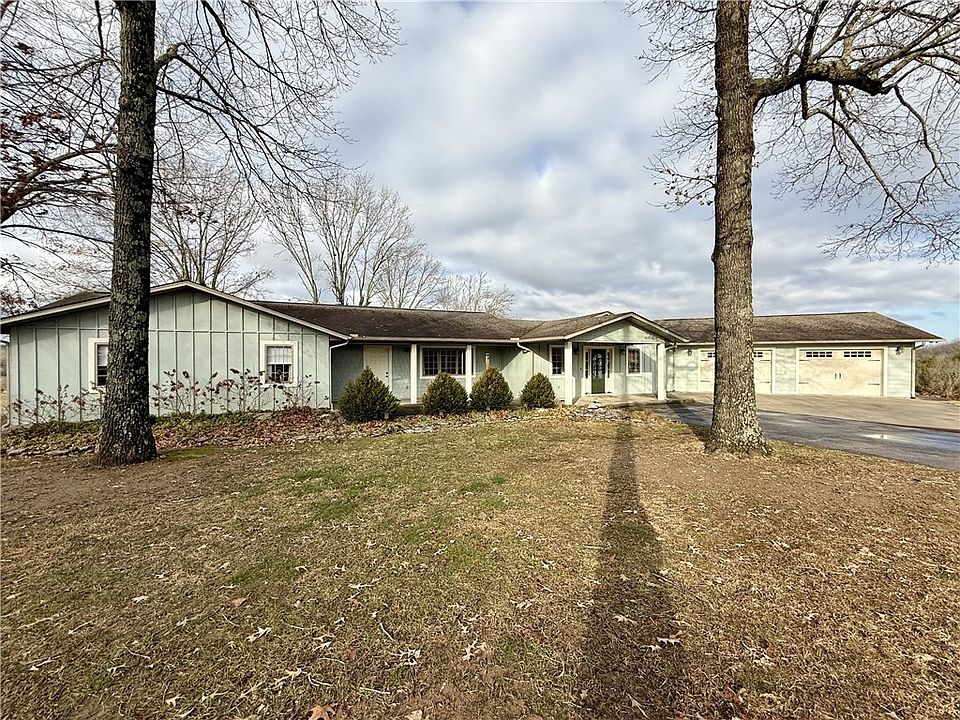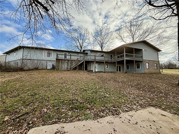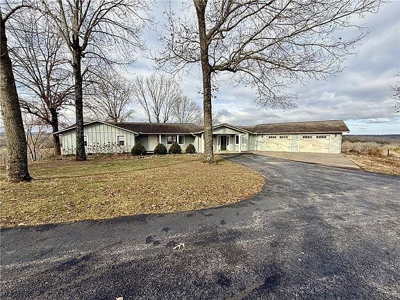 Absolutely beautiful! Enjoy the distant views from every window and the covered deck. The exterior features concrete siding & brick, spacious covered front porch, with oversized two car garage and a detached workshop with garage door and carport storage area. Interior open floor plan with living, kitchen and dining with a propane gas log fireplace and hardwood floors, primary bedroom with an amazing walk-in tile shower, and walk-in closet, 2 bedrooms, 1 full-bath with a mud room and additional storage. Basement features, large family room with propane gas log fireplace, 2 bedroom, full bathroom, storage room and a workshop. All of this is situated on 34.97 acres m/l, just minutes to WalMart, 30 minutes to Branson, MO. A Must SEE!