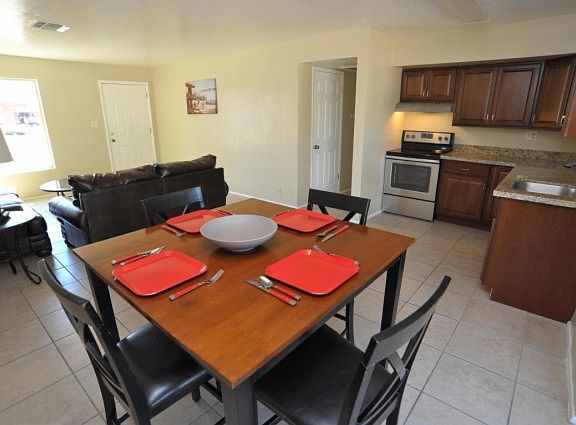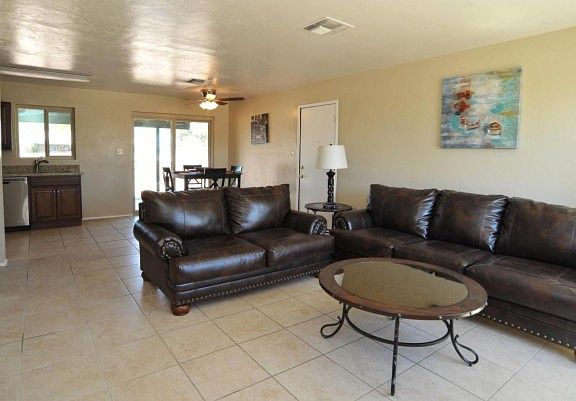 Beautifully remodeled home, ready for move in! Bright and open living room, tiled floors throughout, new interior paint, new dual pane windows, lighting, doors and hardware! New water heater and newer A/C & furnace. Kitchen features new cabinetry, gorgeous granite countertops, undermount stainless steel sink, faucet, dishwasher, stove and hood. Dining area has decorative light/fan and new sliding glass door to the back patio. Bathroom has tiled shower/tub surround, new mirror, vanity and towel bar accessories. Large yard features a covered patio, block wall and mountain views. Carport space has a double gate to pull into the backyard. Must See!