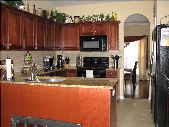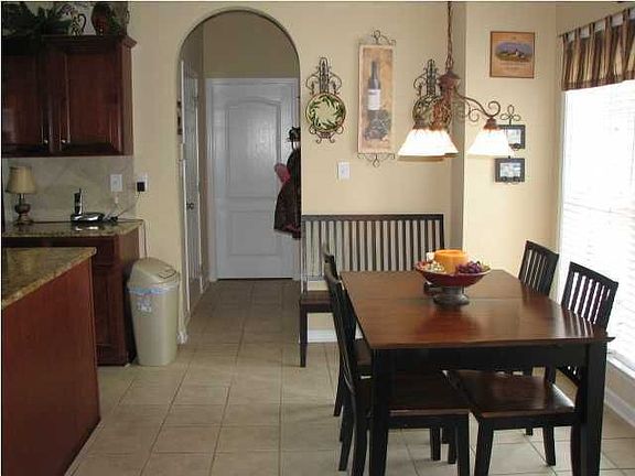 4 Bedroom/2.5 Bath, 3-sides brick w/vinyl siding in rear, on a cul de sac street. Hardwood and tile floors on main level. Large level fenced back yard features separately-fenced pet area, stone fire pit, large patio & wood party deck overlooking green area (no homes directly behind.) The eat-in kitchen features a pantry, granite counter tops, tile floor, custom wood cabinets, Whirlpool appliances. Formal dining room. The family room features a gas fireplace, and opens to a bonus room with a granite-topped bar, under counter beverage chiller, and tile floors. Upstairs, all of the spacious carpeted bedrooms have walk-in closets. The large master suite includes a sitting area, vaulted ceilings and a master bath with separate vanities, jetted garden tub, separate shower and walk-in closet. Other amenities include a security system, a workshop area w/workbench in the 2-car main-level garage, a main level half bath & laundry room. Owners can move in 2 weeks if buyers need quick possession.