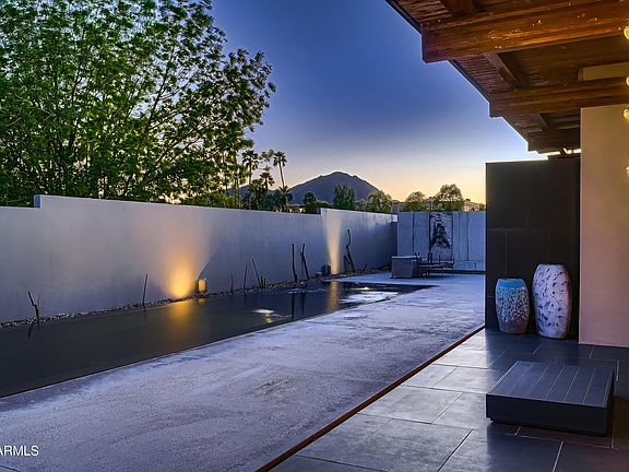 Why live in a house when you can live in a work of art? Every surface was designed with serious thought and intent, bordering on maniacal obsession: basalt floors, Bulthaup kitchen, Gaggeneau appliances, floor to ceiling glass, Camelback Mountain views, and so much more... Rarely is a even a mansion done with this extraordinary level of finish, let alone a lock and leave size 3200 square foot jewel box. Located in the Hilton Casitas gated community, enjoy privileges at the Hilton Hotel. Just around the corner from the coming Ritz Carlton, shopping, restaurants, miles of trails on the canal. Land lease of $790 per month is offset by low taxes of just $2,007 per year. 3D tour available.