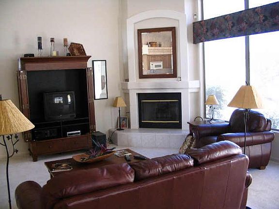 Absolutely gorgeous gated/golf course community in exclusive Red Mountain Ranch. Home shows model perfect, very open great room plan with cozy fireplace. Tile throughout the kitchen and traffic areas, top of the line appliances, corian counter tops, updated cabinets, all interior rooms recently painted, everything in neutrals colors and more. 3rd bedroom set up as den. Mountain views, oversized private spa! Small enclave of homes, pride of ownership really shows! Very friendly, very active neighborhood.