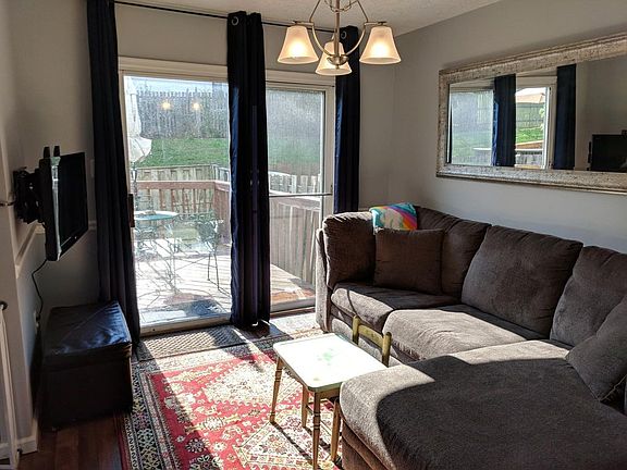 Available for September..Perfectly sized Town home with 2 large master suites on the upper level with private full bathrooms and custom closets. Almost everything is new throughout the home!! Totally new kitchen with sleek quartz countertops and modern backsplash. Living space has comfy carpet and extra separate dining area. Large deck w/small fenced yard. Basement is fully finished, great extra living space or potential in-law suite. The home has fresh paint throughout, newer flooring, upgraded baths, new light fixtures. 1/2 bath on main level and plenty of storage space in the basement laundry area. Beautiful brick front set back from community parking. Everything in pristine condition, a great find. Sorry, no pets.