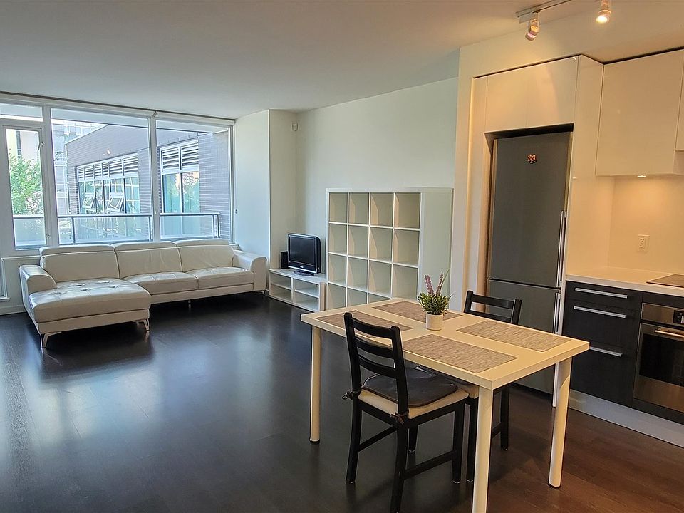 Perfect convenient location in Prime Burnaby right across Metropolis. SILVER by Intra-Corp is one of the best quality high rise buildings in the Metrotown area. Open one bedroom HUGE unit 640 SF, 200 SF balcony with cover. Large private social lounge, fully equipped fitness studio, and an outdoor BBQ area. One parking stall, one storage locker. Walk 3 mins to Metropolis (the largest shopping mall in BC), steps to Marlborough Elementary, Burnaby South High School, Alexander College, CRYSTAL Mall, Bonsor Recreation Complex, Burnaby Public Library, Central Park, Coffee Shops, Restaurants, Banks and etc... Just walk, no need to drive. Rentals allowed, perfect for investment. Skytrain Station is right across, just 40 seconds away.