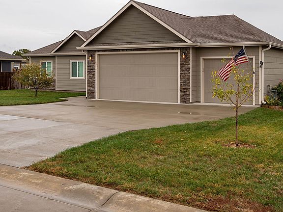 Welcome to this recent home in a quiet, newer neighborhood just north of Wamego! Discover peace of mind in this thoughtfully built home, featuring a dedicated safe room/pantry combo—an invaluable addition that sets this home apart. With a zero-step entry, accessibility is a breeze. Inside, an open-concept plan awaits, with generous 10' ceilings in the main common areas, creating a spacious and inviting atmosphere. The heart of the home is the kitchen, boasting a massive 60 x 60 quartz island and ample countertop space. The primary bedroom offers a sanctuary with impressive 12' cathedral ceilings, an ensuite primary bathroom, and a generously sized walk-in closet. The rest of the house features roomy 9' ceilings. Step outside to a back patio and a private fenced backyard with a good-sized garden plot, perfect for growing your own fresh produce. Additional features include a spacious 3-car garage with built-in shelving and a handy workbench. Contact me to schedule your showing!