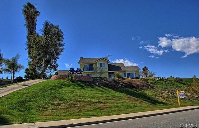 Beautiful custom home sitting high on the hill with sweeping driveway and beautiful views of the Mount Rubidoux, downtown Riverside, and 4th of July fireworks! Large living room and dining room off the spacious gourmet kitchen with custom Corian counter tops, Sub Zero refrigerator, Sterling cook top and sunny breakfast nook. Downstairs you will also find a nice family room with fireplace, room downstairs that is currently used as an office, but could be used as a bonus room or converted to a 4th bedroom. Upstairs you will find 3 bedrooms, including the large master suite. Master has balcony to enjoy the fabulous views. Don't miss the laundry chute! Oversized 2 car garage with new water heater. Lots of extra space for parking with turn around on the top of hill. This large lot has a beautiful black bottom pool and endless possibilities.