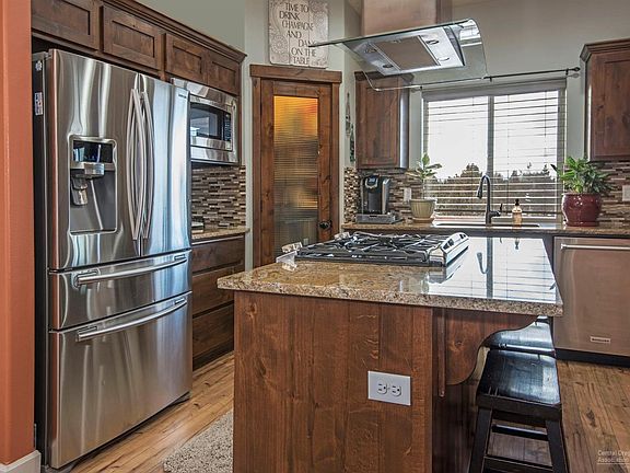 This updated warm & bright, great-room concept home features; a spacious kitchen with granite counters/ title backsplash, SS appliances, a huge pantry, gas appliances, breakfast bar, wood laminate floors and tile throughout, Central A/C/heat pump, large master suite w/ incredible mtn. views, wood laminate floors, master bath w/ db. Sinks, granite counters, built in speakers, tile floors, tile shower & large walk-in closet, the bonus room/office space has a beautiful barn door slider and also has a closet! Outside features an excellent entertaining space with a large covered back porch area, stamped concrete & pavers, built in speakers, outdoor gas firepit, plumbed for BBQ gas, incredible Cascade Mtn. views, separate fenced yard area for dogs/toy, plus a storage shed!
