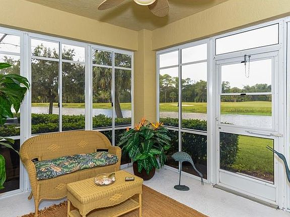 Outstanding water and golf course views! Experience condo living in the premier golf course community of Tara without a mandatory membership. The spacious ground floor, two bedroom, two bath plus den unit is the perfect spot for full-time or seasonal living. The den could easily have a closet added to create a third bedroom. The main living areas, master bedroom and lanai all enjoy the open, private views for viewing water fowl and golfers. The screened lanai recently had sliders added for comfort on chilly days. The kitchen has cozy dining nook. Washer and dryer are in the unit and there is a large exterior storage closet nearby. 2015 water heater and 2010 a/c. Unit comes with a one-car garage and there is ample guest parking. Complex offers a solar heated pool. Owners also have privileges at the Tara Preserve Community Center with another pool, tennis, and pickleball. All this plus just minutes from shopping, restaurants and hospital. No leasing allowed the first six months of ownership and no more than 10% of units permitted to be used as rental. The 2015 tax bill of $1599. Includes CDD fee of $356.46.