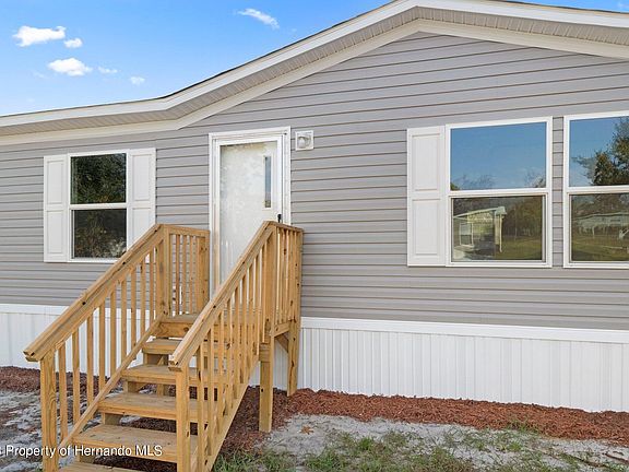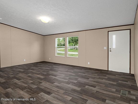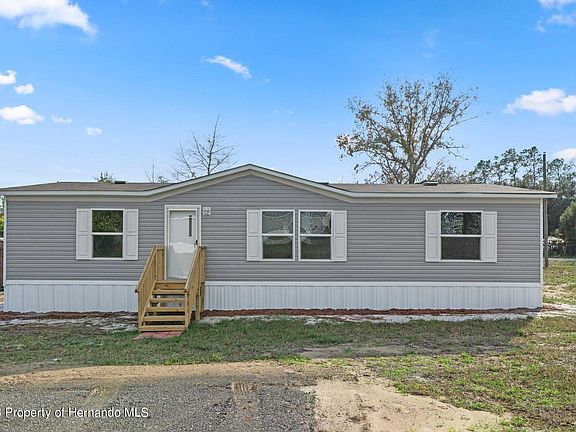 This spacious 3 BR, 2 BA home, new in 2022, boasts 1344 LSF, with a split floor plan. The open layout of the kitchen, complete with an island for extra work space and Duracraft cabinets, is perfect for entertaining. The brand new Frigidaire appliances will make cooking a breeze. The Beaufloor Linoleum throughout adds a touch of style and is easy to maintain. The home is equipped with a brand new, energy efficient Carrier 14 SEER HVAC system and an Ecobee Smart Thermostat, ensuring that you stay comfortable year-round. The upgraded insulation and Low E thermopane windows help to keep energy costs down. This home is conveniently located just 2 miles from Croom WMA, 9 miles from Brooksville and 50 miles from Tampa, with easy access to major highways including I-75 and Veteran's Expwy/SR589.