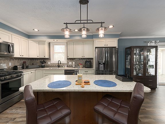 The ultimate home for entertaining guests and families! This 3-bedroom 2 bath open concept home boasts over 2,200 sq ft and sits on 4.9 acres with Tippecanoe River frontage! There is an amazing large family room with woodburning fireplace, plus a HUGE media room. The extra garage/party room has a hot tub and TV. The owners have done an amazing job caring for and updating this riverfront oasis. A complete Kitchen and Bathrooms remodel is just the start! This home also has brand new flooring, paint, lighting on the interior and exterior, updated wiring, crown molding, front deck, storm doors, garage doors, shutters, and a new well pump and pressure tank. Summertime is perfect for setting up your lawn chairs and cooling off in the river!