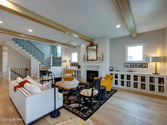 Character abounds in this sun drenched painted brick home. The tall ceilings and wide plank solid wood floors greet you. The living area is wide open with the great room, dining area and kitchen walking out to the covered side porch with fireplace. This area could be easily enclosed to expand the living area. The kitchen offers miles of cabinetry and white countertops with breakfast bar. The office has a built-in desk and glass sliding barn door. The pampering primary bedroom is vaulted with two walk-in closets and custom shelving. Enjoy the luxurious primary bathroom. The basement was finished with an exciting party room and full wet bar. There is also a full bath and exercise room. On the second floor, you will find three more bedrooms and two full bathrooms. There is a second level porch also! The first floor laundry room has built-in cubbies and walks out to a three car garage! Seller is sad to leave this exquisite home. It is move in ready and waiting for you!