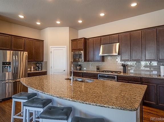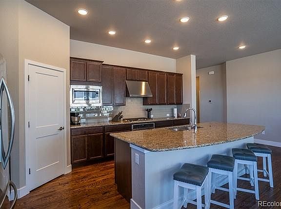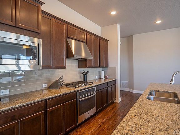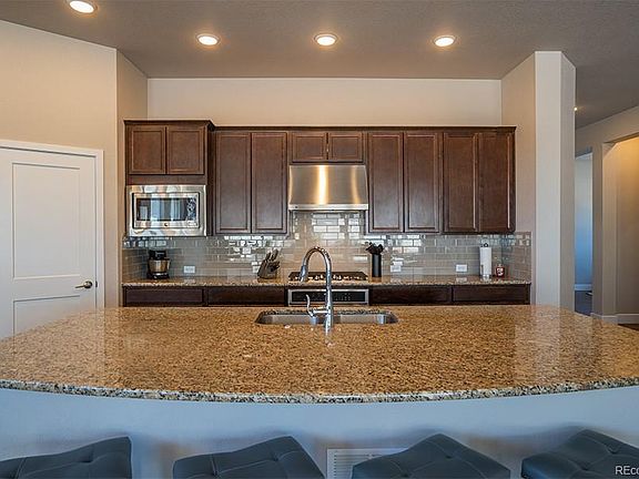 Luxurious main-level living in the coveted Enclave of Wolf Ranch! Better than new, award-winning David Weekley construction! The "Glisen" floor plan with 3,700+SF & 4 beds & 3 baths offers the perfect venue for entertaining! The open floor plan is swimming w/light from huge, tall windows! The gorgeous kitchen is a chef's delight & includes a sizable center island w/plenty of seating, granite counters, walnut cabinets, stainless appliances & a walk-in pantry! Thoughtful design & elegant finishes will steal your heart! The living and dining spaces flow seamlessly for everyday gathering with a unique woven 3-D tile fireplace as the centerpiece! You will love the spacious master retreat with a spa-like 5-piece en suite bath! Flex space off the entry serves well as a study, play room or formal parlor to greet guests! Finished basement with 2 large bedrooms and an enormous family room! Enjoy serving snacks and drinks from the wet bar for the big game! Wine fridge included!