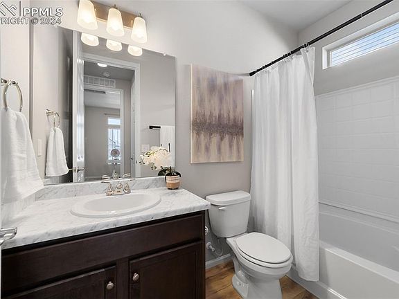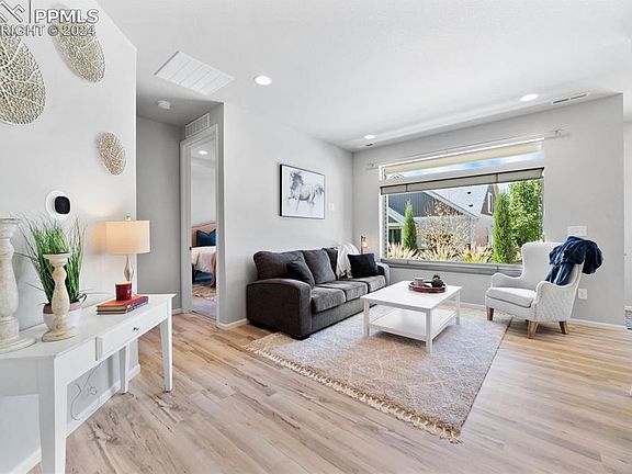 Welcome to your perfect 2-bedroom, 2-bathroom gated retreat in this vibrant 55+ community! This charming, one-level home is packed with modern features and appliances, starting with sleek vinyl floors and gorgeous stone countertops throughout. A kitchen and dinning room combo that boasts a large pantry, an island perfect for entertaining, and extended cabinets offering all the storage you could ever need. The spacious master suite offers a walk-in closet and an oversized master bath, giving you plenty of room to relax and unwind. The private community maintains low HOA dues that mean more fun money for you. Enjoy full access to The Retreat's fabulous pool, clubhouse, fitness center, pickleball, and bocce ball courts. But that's not all! Your perks extend to Banning Lewis Ranch, where you can dive into the Ranch House pool and hot tub, explore 75+ acres of parks and trails, take your pup to the dog park, hit the tennis courts, or flex your green thumb in the community garden. It’s more than just a home, it’s a whole new lifestyle waiting for you!